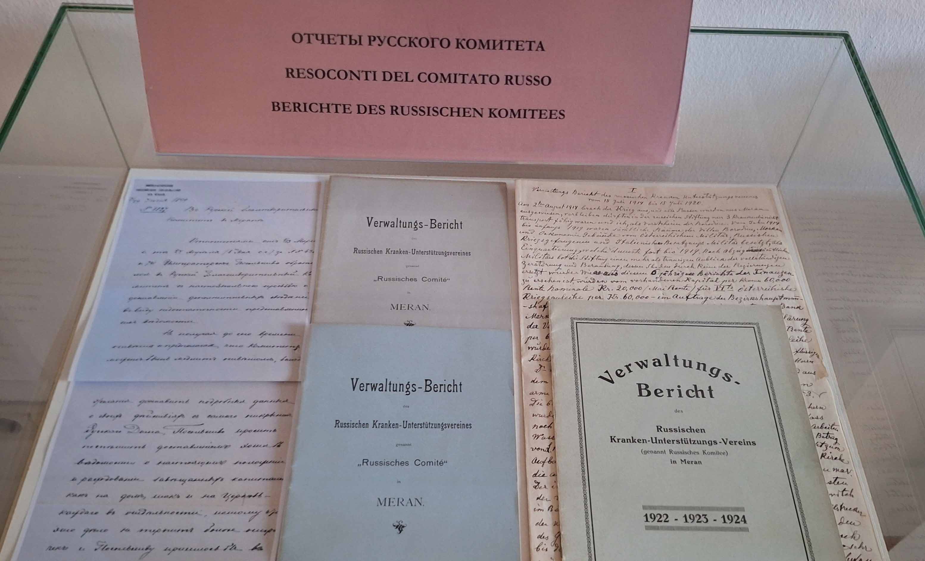 In der Sammlung wird auch eine Ausstellung über 150 Jahre Russland in Meran gezeigt: „Meran: 150 Jahre russische Präsenz in Gesichtern“. Anhand der damaligen Hauptpersonen wird die Gründung eines „Russischen Komitees“ einer privaten Wohltätigkeitsorganisation im Jahr 1875 erzählt, die die Beziehungen zwischen der Stadt Meran und der russischen Diasporagemeinde begründet. Ausgestellt sind etwa 30 Tafeln mit Fotografien, Dokumenten und Artefakten aus dem Archiv der Stiftung Borodine, die die Geschichte der Gründerinnen und Gründer, der Förderer und Gönnerinnen und der Gäste im späten 19. Jahrhundert und im 20. Jahrhundert erzählen.